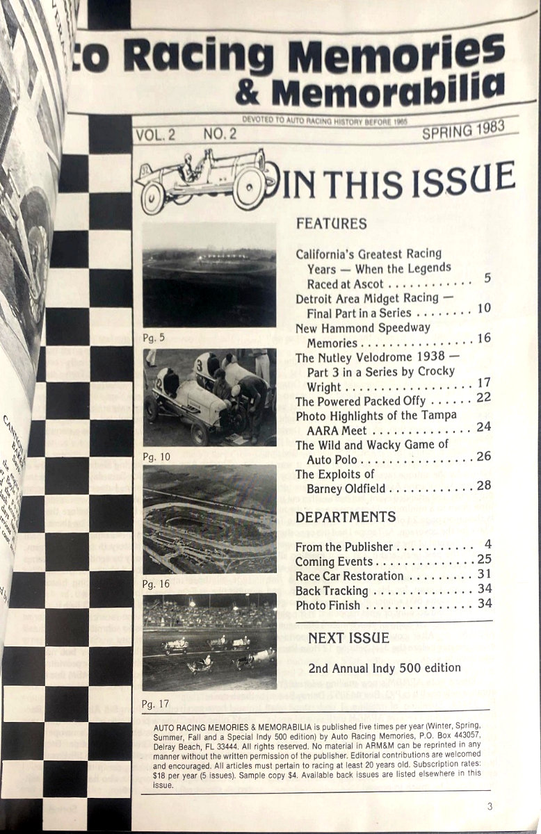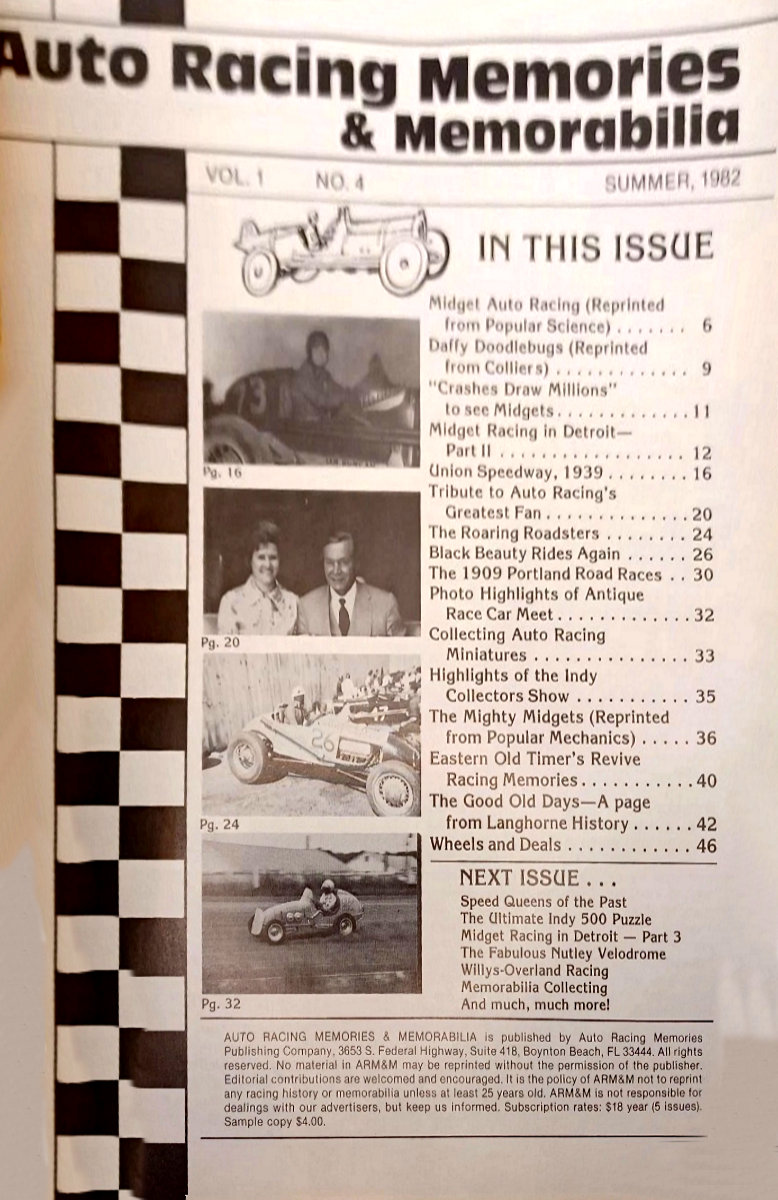 Auto Racing Memories was published by Ken C. Breslauer in Delray Beach, Florida. The magazine was a quarterly title devoted to