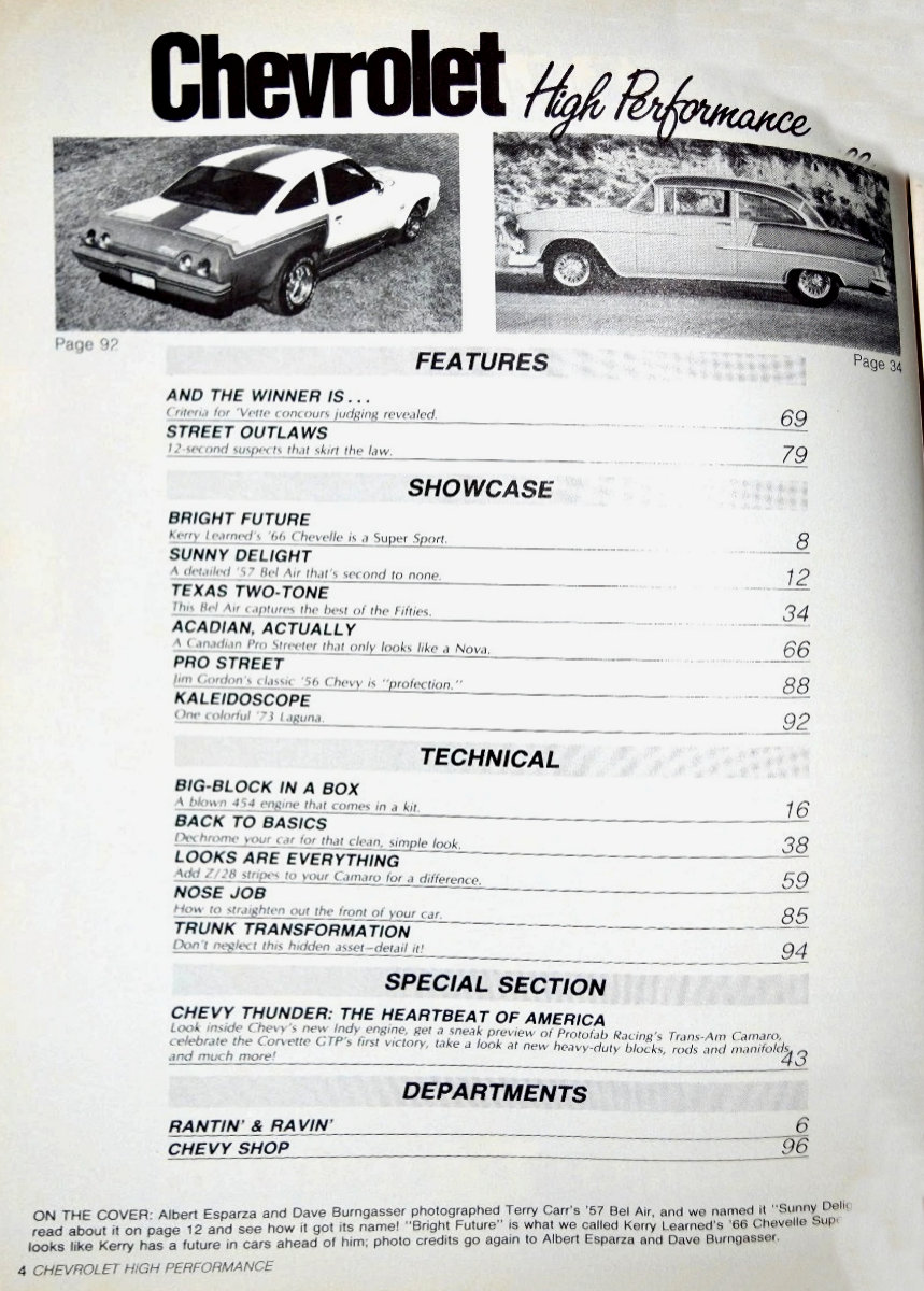 Like many Petersen titles in the 1980s, it started first as an annual in 1984 under the Hot Rod High Performance Series. It then became a quarterly magazine in 1986 and went to a bi-monthly schedule in 1987. August 1990 was the last printed issue, then it was re-titled as Chevy High Performance.