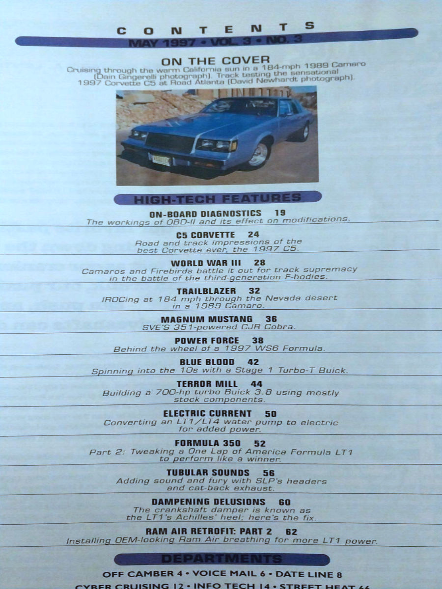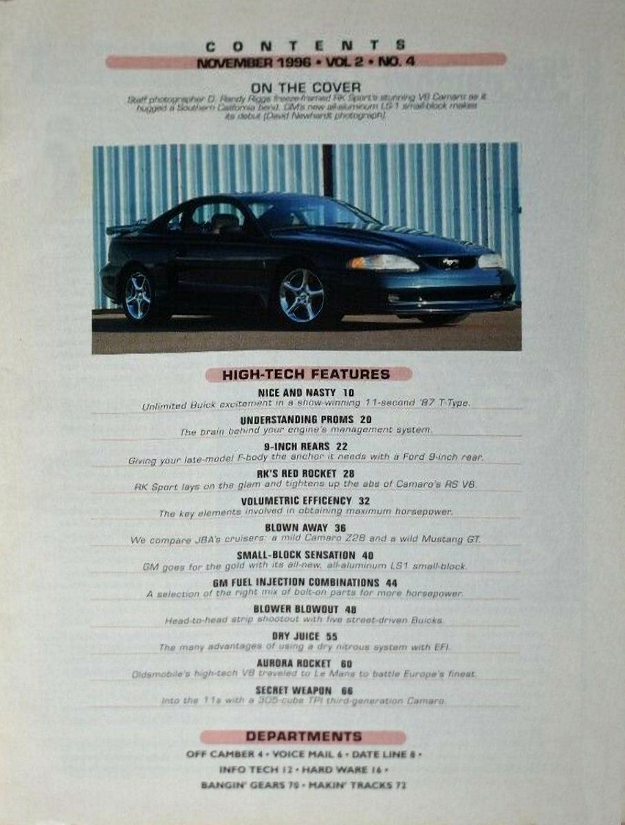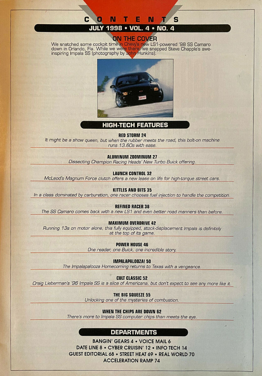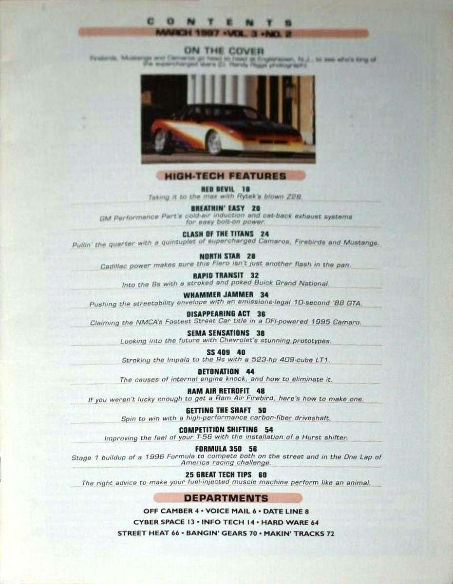 All the titles of CSK Publishing were sold to a division of Primedia, McMullen-Argus. Many magazines were being consolidated under two major players - Primedia and the former Petersen Publishing empire which had become EMAP-Petersen. With this consolidation came a situation where each publisher had multiple titles covering the same general content and target readership. Some magazines disappeared, but other publishers chose to focus more carefully. So in September, 1998, HTP was re-titled to GM High Tech Performance (GMHTP) and shifted content to cars from General Motors.