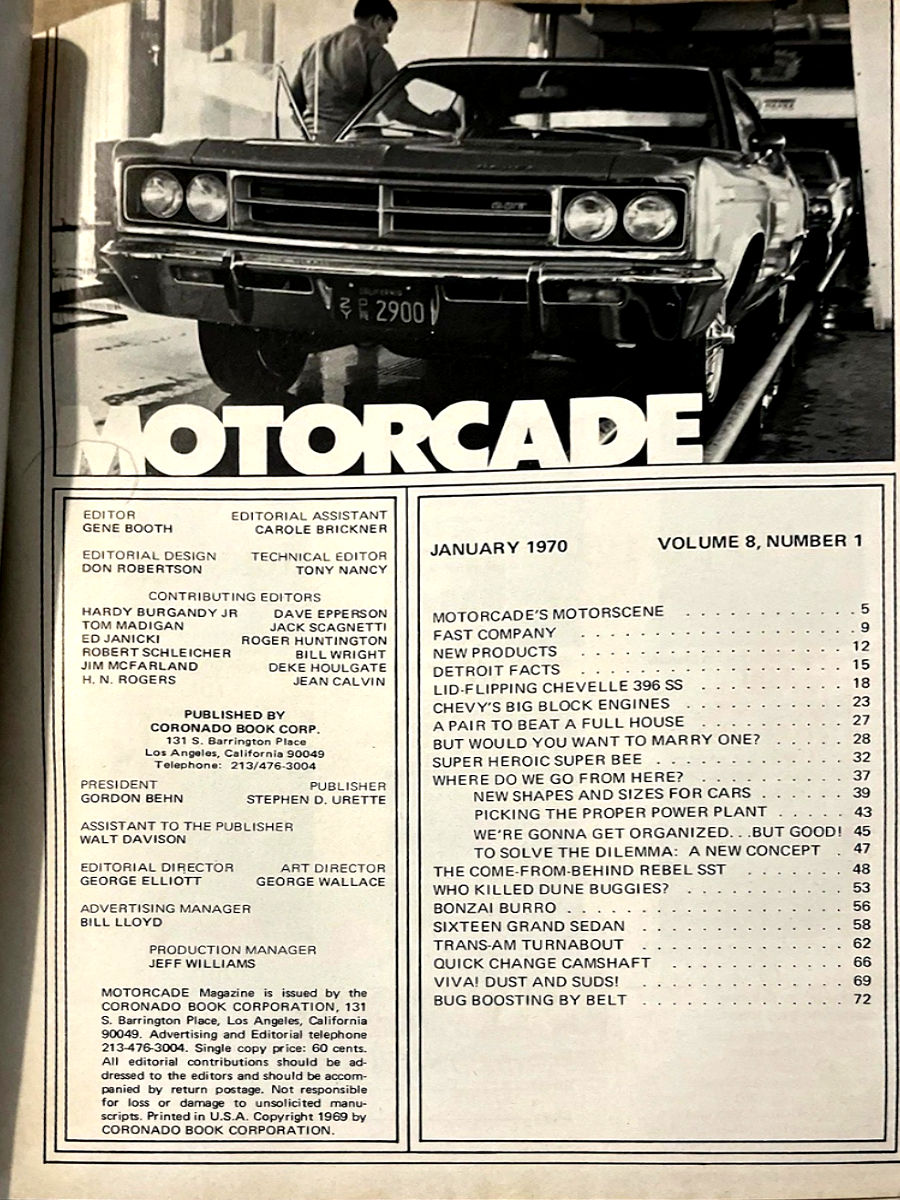 Motorcade was published by Gordon Behn and the Coronado Book Corporation. The magazine