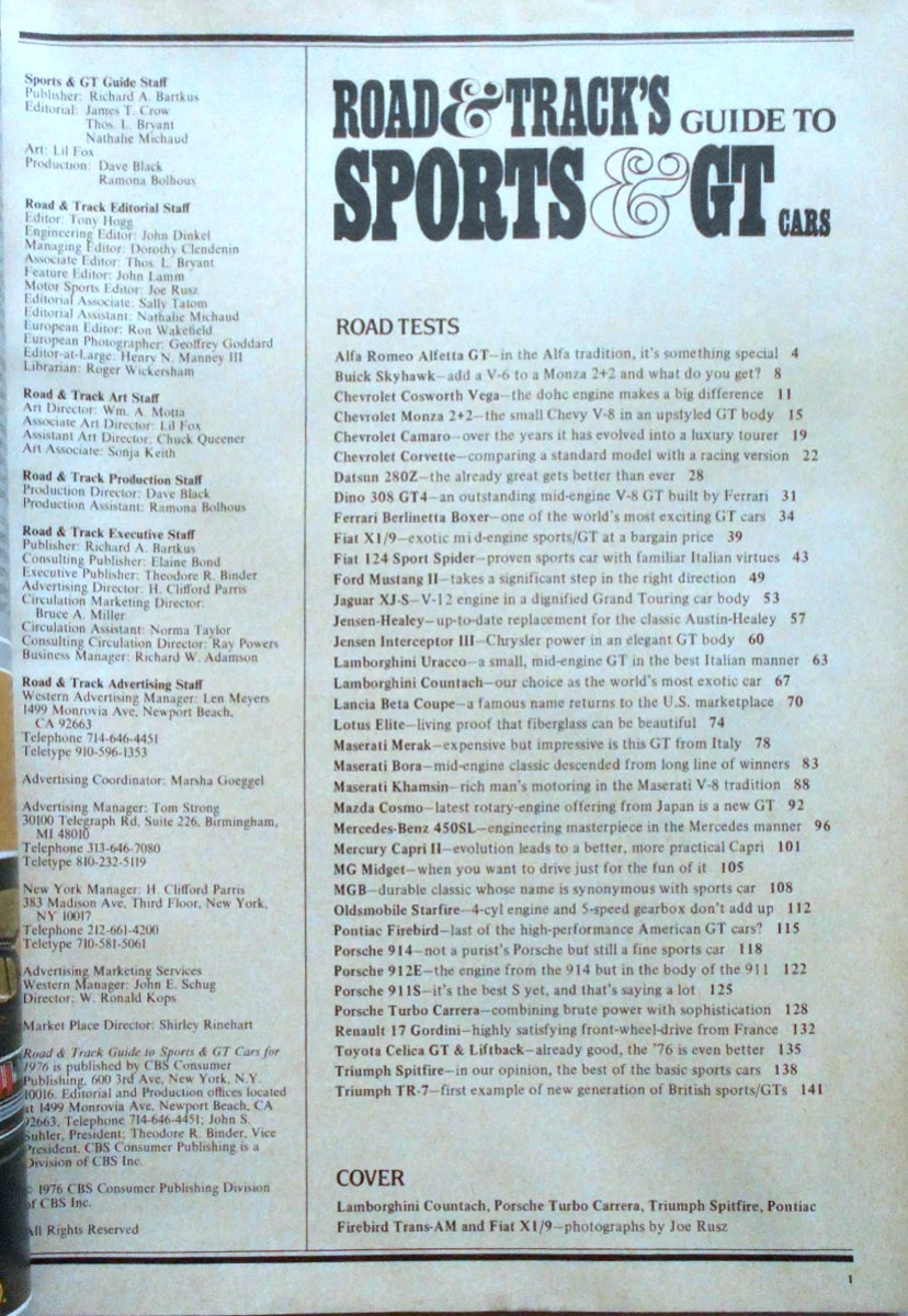 Besides publishing the monthly title, editors created a number of annual or one-shot titles including Road Test Annuals, Buyer's Guides, and Sports & GT Cars. For this title, either publishing was sporadic or we are missing some rare issues.