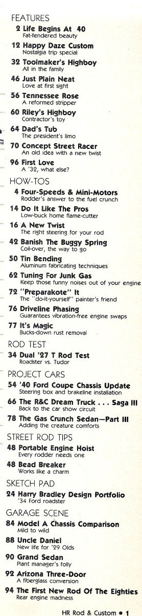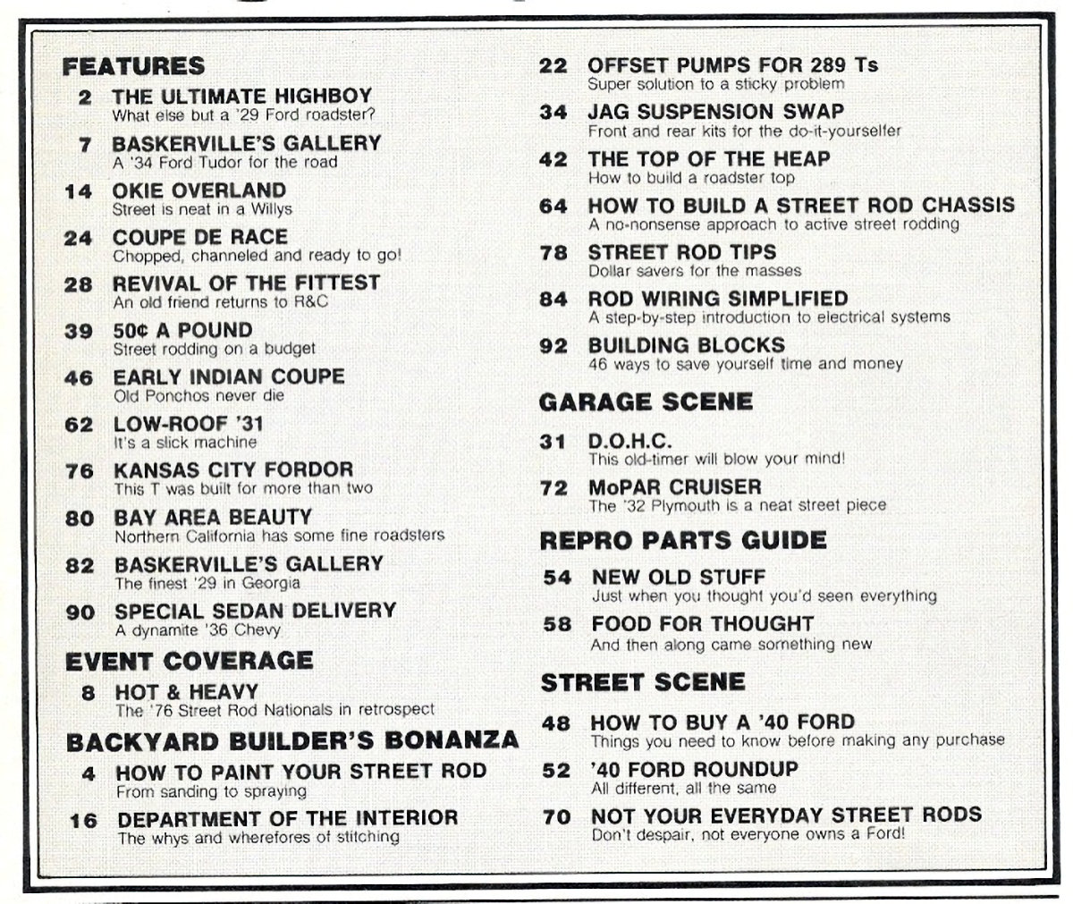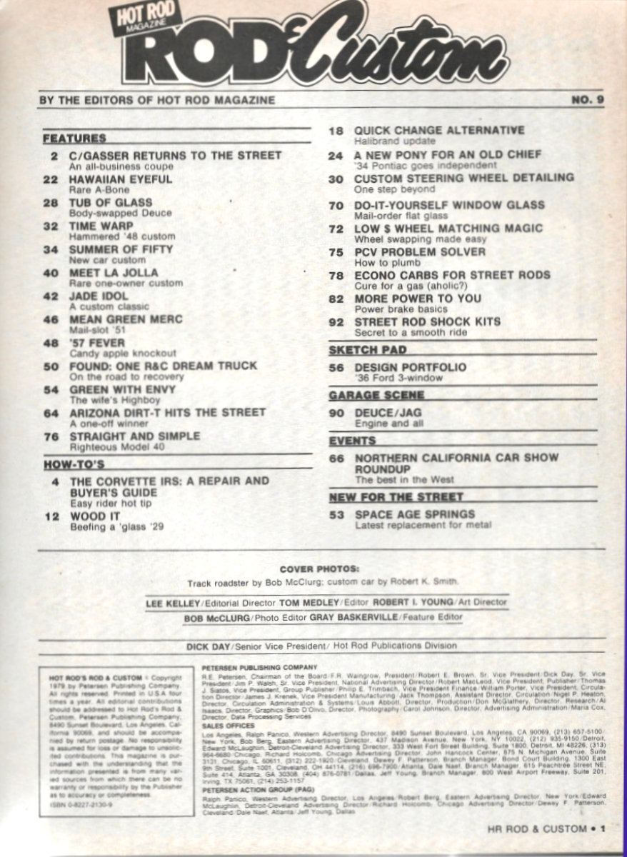 feature articles, project vehicles, how-to's and coverage of national street rod events. Numerous editors and staff kept the dream