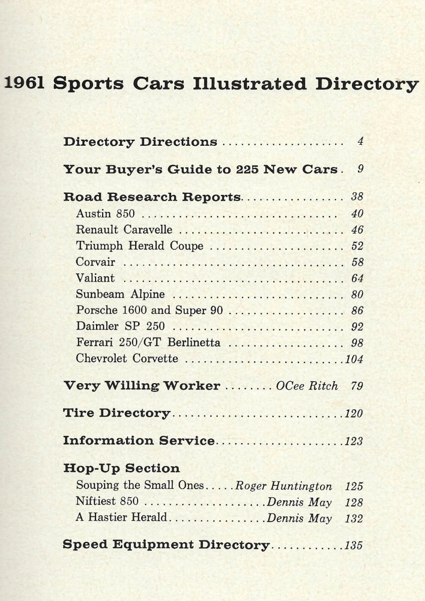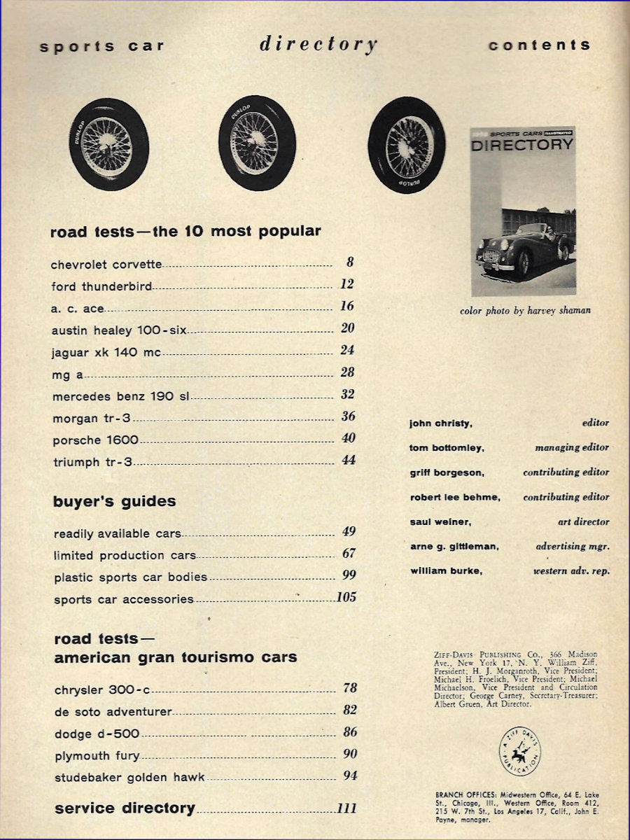 Besides publishing the monthly title, editors Ken Purdy and later John Christy also created these annuals on sports cars. These started the year after Ziff-Davis purchased the title and ended with the re-titling to Car and Driver.