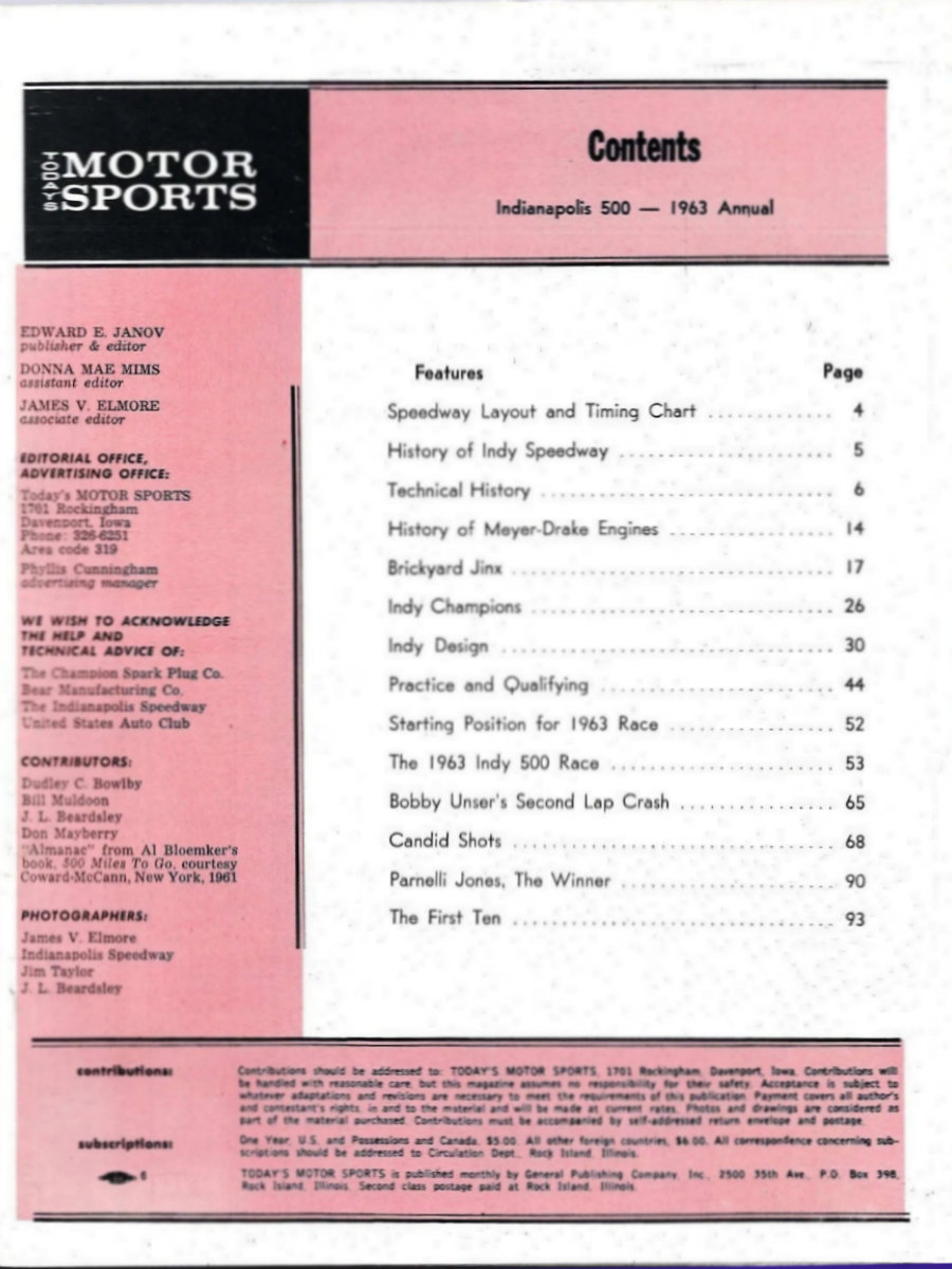 numbering continued from its predecessor. The title focused on major motoring racing events in the US and was published by Edward E. Janov at